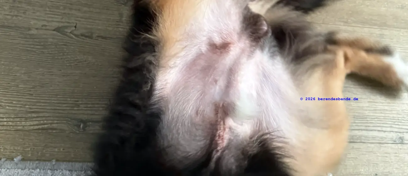Leider mussten wir uns mit dem Thema Kryptorchismus beschäftigen. Beim Kauf von Skye bekamen wir vom Züchter den Hinweis, dass beide Hoden noch nicht abgestiegen waren. Das ist eigentlich kein Problem, da die Hoden bis zum Alter von 6 Monaten noch an ihren Platz wandern können.