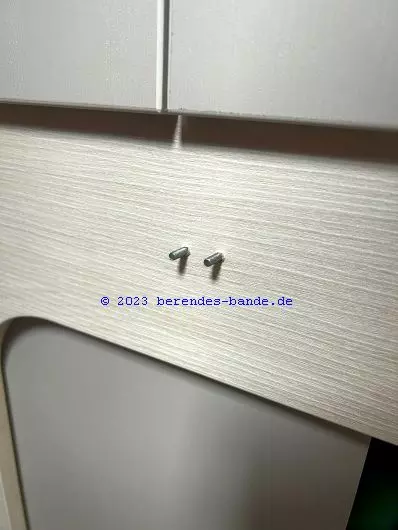 Ein Ärgernis war der Handtuchhalter im Bad. Dieser lockerte sich von selbst. Das Nachziehen der Befestigungsschrauben brachte keine Abhilfe. Ich habe den Halter komplett entfernt. Am Handtuchhalter ist an jeder Befestigungsseite ein Abstandhalter mit je zwei M4 Maschinenschrauben angeschraubt. Auch diese Schrauben habe ich entfernt. Der Abstand dieser beiden Schrauben ist identisch mit dem Abstand der beiden Holzschrauben, die den Halter an der Badezimmerwand halten sollten. Ich habe diese Löcher auf 4,5 mm bis in die Garage durchgebohrt. In der Garage habe ich die Löcher mit einem 8 mm Bohrer vorsichtig angesenkt. Mit M4 Senkkopfschrauben der entsprechenden Länge habe ich den Handtuchhalter samt Abstandhalter verschraubt. Ein Tropfen Schraubensicherung je Schraube verhindert zuverlässig, dass diese sich erneut lösen. Optisch ist es kein Unterschied zur Originalbefestigung, nur die Stabilität wurde entscheidend verbessert.