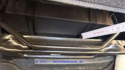 Nach der Schottlandtour im Sommer 23 habe ich noch folgende Arbeiten durchgeführt. Snickers hatte sich seine Verletzung am Beifahrersitz zugezogen. Hier sind scharfe Kanten. Zum einen von oben, direkt unterhalb des Hebels mit dem die Sitzposition verstellt wird. Hier hatte ich mir beim Saubermachen auch schon einen Kratzer zugezogen. Diese Kante wird jetzt durch ein Kantenschutzprofil entschärft. Dann ist von vorne eine trapezförmige Öffnung im Blech. Die Kante ist zwar nach innen gebogen, sie war jedoch die Ursache für Snickers Verletzung, da sich seine Pfote in der Öffnung verhakt hatte. Hier habe ich eine 300 mm x 60 mm x 3 mm Acrylglasplatte auf der Innenseite angebracht. Diese wird durch zwei Schrauben gehalten. Im Blech wurden dafür zwei 4 mm Bohrungen nötig.