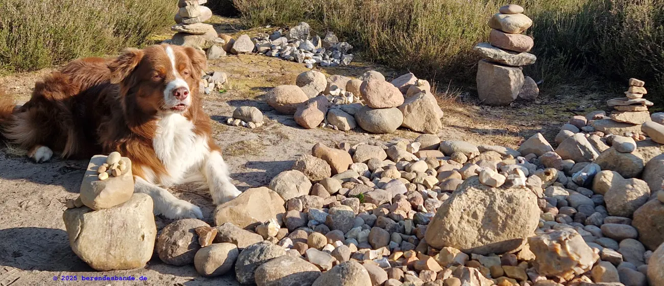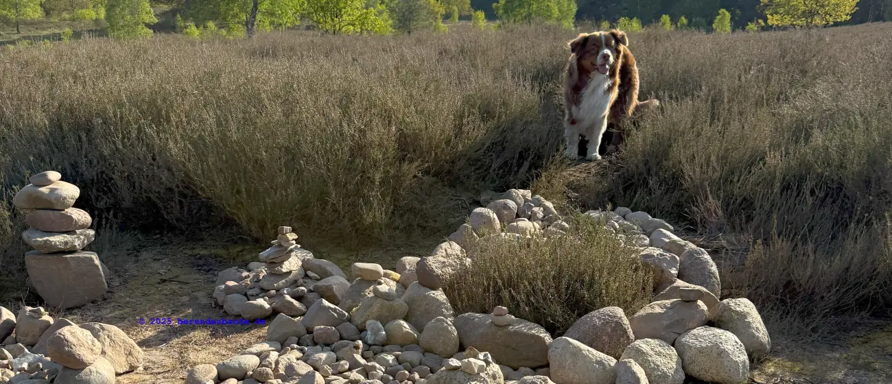Vom Basilager machten wir diverse Ausflüge, z.B. in den Wildpark Lüneburger Heide in Hanstedt-Nindorf. Hier kann man seine Fellnasen mitbringen. Es war eine extra Trainingseinheit, als wir mit unseren Aussies durch das Gehege mit Rot- und Dammwild spazierten. Aber auch die Greifvogelshow war ein Erlebnis. Weitere Ziele waren Spaziergänge zur Schwindebachquelle oder zum Wilseder Berg.