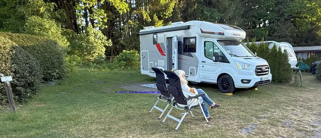 Unser Basislager schlagen wir in Schneverdingen im Camping-Park Lüneburger Heide auf. Der Platz ist liebevoll angelegt, die Parzellen sind ausreichend groß und verfügen über Frisch- und Abwasseranschluss. Die Sanitärgebäude sind modern und sauber. In der Vorsaison kostet die Nacht 36 Euro. Vor dem eigentlichen Campingplatz gibt es 18 Stellplätze für Kurzzeitgäste. Hier kostet die Nacht 22 Euro für Mobil und zwei Personen. Es gibt jede Menge Extras, wie einen Badesee, ein Restaurant, den Brötchenservice usw... Gassirunden sind kein Problem. Wir waren gern zu Gast.