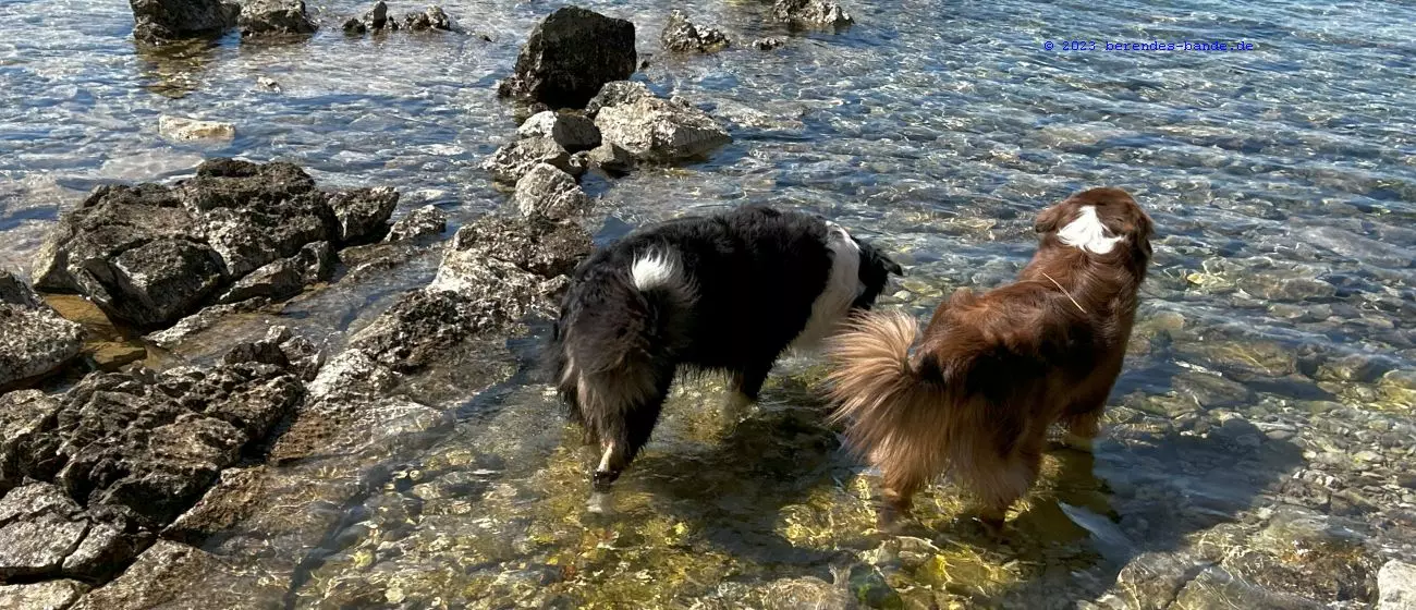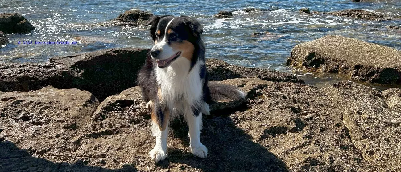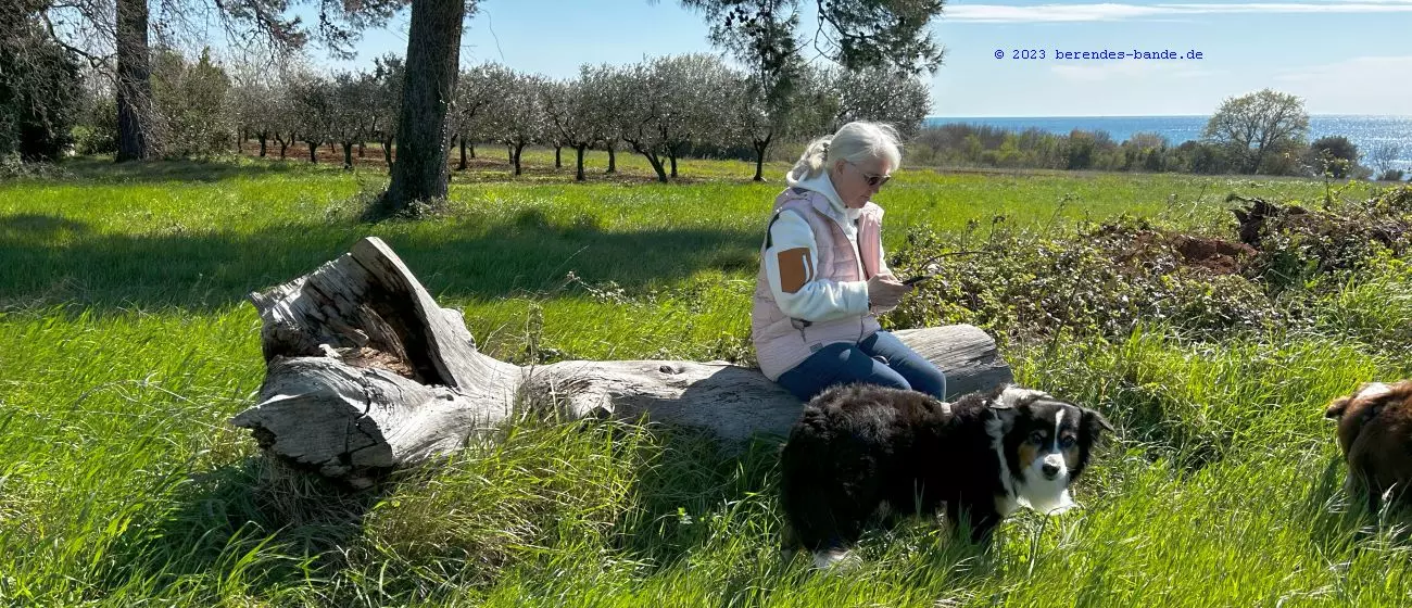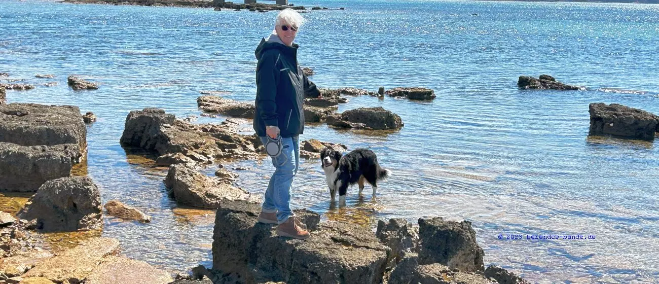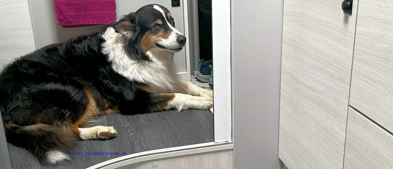 Nach ganz langer Zeit sind wir wieder zuhause angekommen - und simsalabim war Frauchen auch wieder da. Dann haben Herrchen und Frauchen Kisten aus dem Keller geholt und in das Wohnmobil gepackt. Ja und dann, dann sind wir alle zusammen eingestiegen und wieder ganz doll lange gefahren. Als wir angekommen sind, war da Meer und Sonne - das war schön! Wenn das Fell immer nur nass wird ist das gar nicht schön und den Bademantel mag ich auch nicht anziehen. Aber, da im Urlaub, brauchten wir kleinen Bademantel. Da hatten wir jeden Tag Sonne. In dem Wohnmobil haben wir immer geschlafen - alle - Hunde und Menschen. Ich glaube, das gehört jetzt uns und wir machen weiter schöne Urlaube, nur eben mit einem neuen Haus auf Rädern. Wir haben da jetzt viel mehr Platz und der Snickers liegt am liebsten im Badezimmer. Es gibt auch wieder eine Sitzbank, da springe ich immer rauf und guck aus dem Fenster. Anschließend schimpft Frauchen immer - ich weiß gar nicht warum.