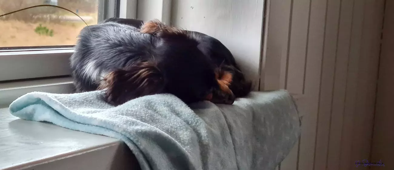 Heute gab es dann die nächste Überraschung. Verena kam uns besuchen und hat den Knoppi mitgebracht. Das Haus ist so groß, da können die beiden auch bei uns wohnen. Da ging natürlich sofort wieder die Post ab. Der Knoppi ist total wild auf mich. Aber abends sind wir alle müde und dann muss ich den Koppi immer anknurren, weil der keine Ruhe gibt. Am ersten Abend hat der Doofkopp doch fast eine ganze Stunde geheult, als wir ins Bett gegangen sind. Also die Menschen sind ins Bett gegangen, der Snickers und ich liegen auf unserer Matte vor dem Bett.