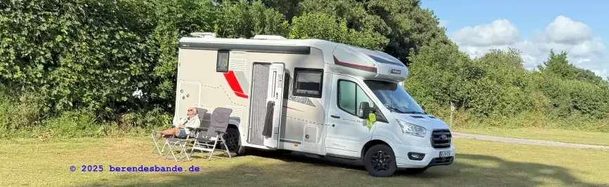 Vor ein paar Tagen haben Herrchen und Frauchen die grüne Hülle von dem Riesenauto gemacht und nachgeguckt, ob es noch da ist. Dann haben sie alle möglichen Sachen in Kisten gepackt und sind damit weggelaufen. Aus sie wiederkamen, waren die Kisten leer. Ich hab schon gedacht, die schmeißen das alles weg, weil sie immer in die Garage gelaufen sind und da stehen die Mülltonnen. Aber sie haben das Alles gar nicht weggeschmissen. Die haben die Sachen in das Riesenauto gepackt, das steht nämlich vor der Garage. Und dann sind alle eingestiegen. Aber ich wollte da nicht rein, das war mir gruselig. Aber als der Snickers und der Devil auch darein gegangen sind, hab ich gedacht, besser einsteigen als zu allein zu Hause bleiben. Es ist ja auch gar nicht so gruselig - ich hatte nur vergessen, dass ich schon einmal mit dem Riesenauto ans Meer gefahren bin. Und jetzt sind wir wieder ans Meer gefahren. Also nicht an das gleiche Meer, aber da, wo wir angehalten haben, waren noch mehr so Autos - nur waren da keine Hunde drin. Da war auch nur ein kleines Meer und wir sind nur einen Tag geblieben und dann weiter gefahren.