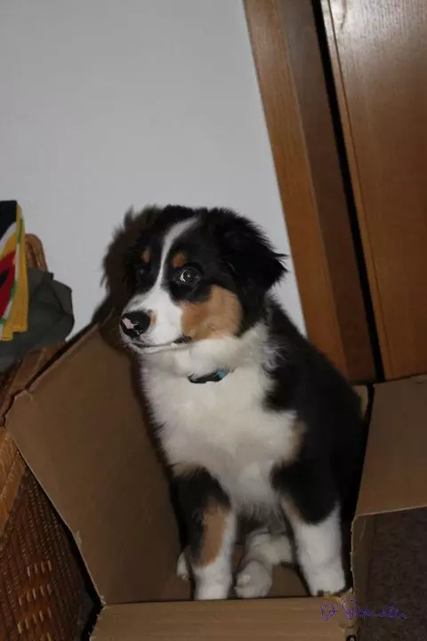 In dieser Woche habe ich mein Seepferdchen gemacht. Ich war mit Frauchen und Verena an der Ruhr spazieren und da bin ich dann mal einfach so reingesprungen und hab ein bisschen geplanscht. Anschließend sah ich dann aus, wie ein begossener Pudel. Ja und sonst gibt es wenig Neues zu berichten. Noch passe ich in den Wäschekorb, beim Messen am Sonntag war ich 44 cm hoch und 13 kg schwer. Ich schlafe jetzt immer von 23 Uhr bis 6 Uhr, am Wochenende auch schon mal etwas länger. Pipi und Häufchen mache ich immer nur draußen. Meine Leute sind ganz aus dem Häuschen und ganz aufgeregt. Irgendwie kommt wohl jemand zu Besuch, Weihnachten heißt der wohl - keine Ahnung warum die komische Sachen machen. Einen Tannenbaum haben sie auf den Balkon gestellt und im Wohnzimmer steht Grünzeug mit vier Kerzen. Anzünden tun sie nur drei - blöd was? Ich war mit Frauchen und Herrchen einkaufen. Da waren vielleicht viele Leute - puh und warm war es da. Herrchen hat immer andere Jacken angezogen und irgendwann hat er eine mitgenommen. Dann sind wir endlich nach Hause gefahren. Frauchen hatte auch ein paar Tüten mit Klamotten....