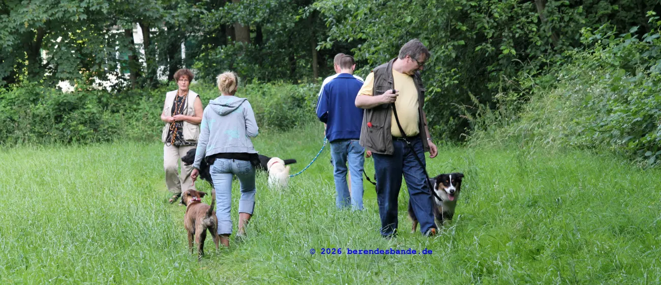 Jutta, Tina, Nicole und Ulf sind Trainer, die meinem Herrchen immer erklären, was er falsch macht. Die Trainer sind toll, die versteh ich meistens. Aber Herrchen lernt das auch noch, bestimmt... Wenn ich die Übungen gut mache, bekomme ich immer Leckerchen. Das macht mir großen Spaß. Spielen können wir natürlich immer noch, meistens vorher und nachher, aber auch mal zwischendurch. Neuerdings lernen wir Laufen ohne Leine, aber nicht weglaufen, sondern zusammen mit Herrchen durch die anderen Menschen und Hunde, oder im Slalom durch Stangen. Manchmal muss ich auch einfach nur rumliegen und darf nicht aufstehen. Auch nicht wenn Herrchen weggeht, oder mir einer der Trainer ein Leckerchen schenken will. Das ist echt gemein, aber wenn ich das Leckerchen nicht esse, bekomme ich nachher von Herrchen ein Stückchen Käse. Der schmeckt viiiieeelll besser als Leckerchen.