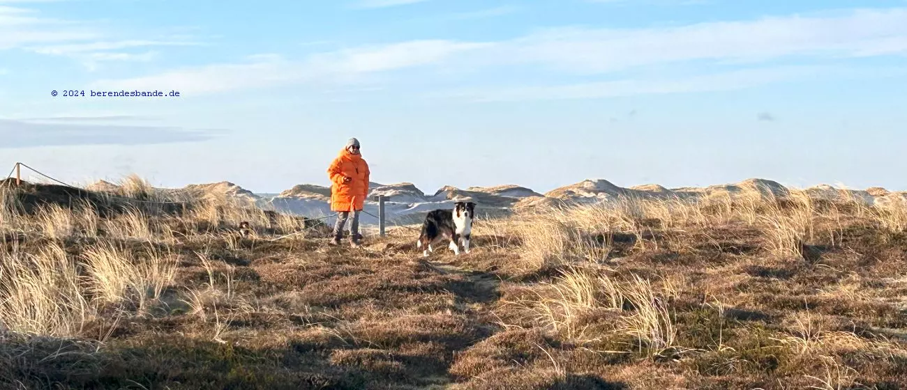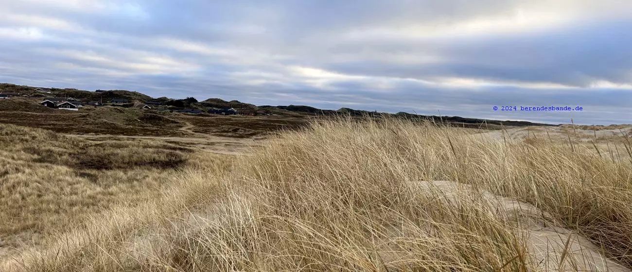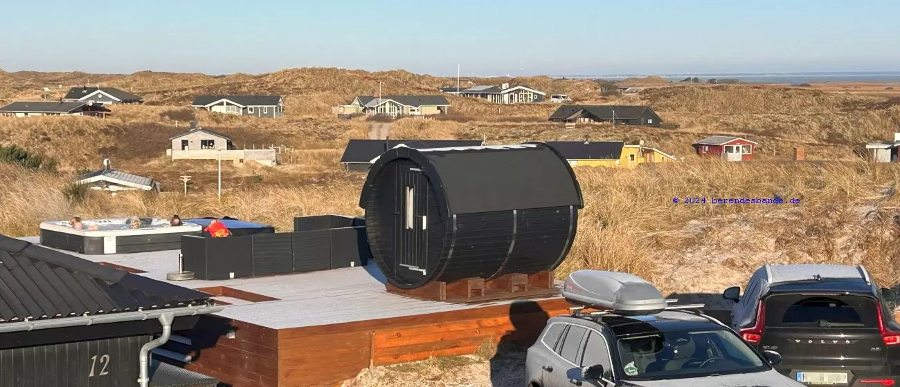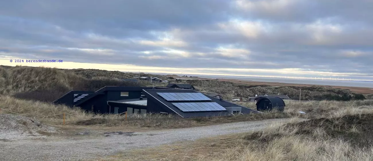 So auch in 2024, wieder geht die Reise in die Nähe von Hvide Sande, auf einen schmalen Ladstrich zwischen Nordsee und Ringkobing Fjord. Unsere Ferienunterkunft haben wir wieder über Esmark.de gebucht. Sie liegt etwa 12 km südlich von Hvide Sande. Die Unterkunft hat wirklich alles, was das Herz begehrt, angefangen vom Außen-Whirlpool und der Fasssauna, über den Billardtisch und die Tischtennisplatte, bis hin hin zur voll ausgestatteten Küche. Das Haus, im Havvej 12, liegt erhöht in den Dünen, es hat von der Terrasse einen traumhaften Blick auf den Fjord und ist von den umliegenden Häusern nicht einsehbar. Es spielt eigentlich keine Rolle, da die Feriensiedlung mehr oder weniger unbewohnt ist. Es ist natürlich kein Problem mit den Hunden spazieren zu gehen. Und in diesem Jahr haben wir auch noch Glück mit dem Wetter. Die Sonne lacht bei -7 Grad vom Himmel, als wir am Freitagnachmittag ankommen. Das ändert sich erst am Dienstag, als es sich bewölkt und die Temperatur über null Grad steigt. Es bleibt allerdings trocken. Wir genießen es, im Whirlpool und in der Saune zu entspannen. Ansonsten lassen wir die Seele baumeln und tun einfach mal - nichts.