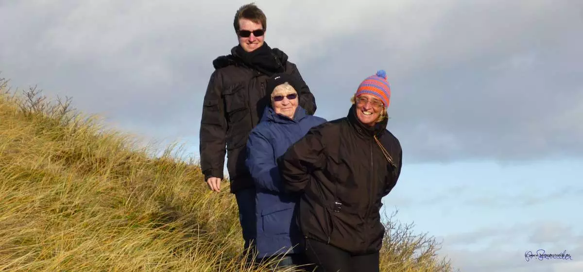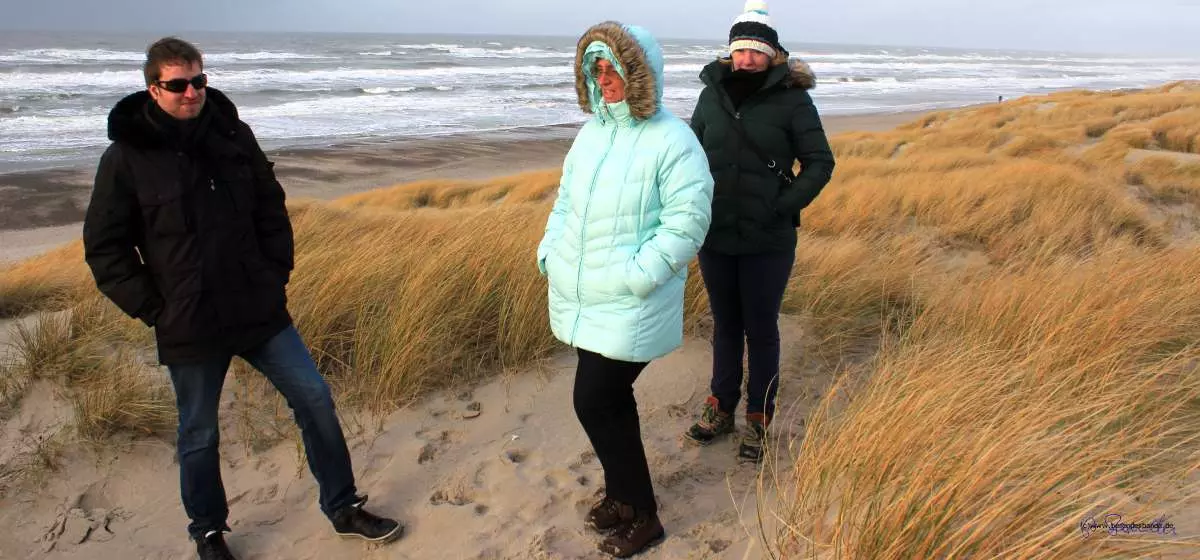 Am Ziel angekommen waren wir begeistert. Das letzte Haus am Ende einer Sackgasse, direkt am Fuß der Dünen. Abgesehen von den viel zu weichen Betten war das Haus super. Unser Hund war völlig aus dem Häuschen, konnte er direkt ohne Leine nach draußen und laufen. Ruhe war angesagt und wir haben es sehr genossen. Abends war es stockfinster, man konnte ohne Taschenlampe nicht aus dem Haus gehen. Hinter einer kleinen Mondlandschaft aus drei Dünengürteln war der Strand, weit und breit und einsam. Es gab zwar auch andere Urlauber, aber auch jede Menge Platz, um sich aus dem Weg zu gehen. Das Wetter meinte es ganz gut mit uns, sieht man vom Heiligabend ab, an dem die Welt unter ging und der Regen von allen Seiten auf uns einprasselte. Wir konnten schöne ausgiebige Strandspaziergänge unternehmen. Wenn wir dann durchgepustet nach Hause kamen, konnten wir in der Sauna herrlich entspannen.