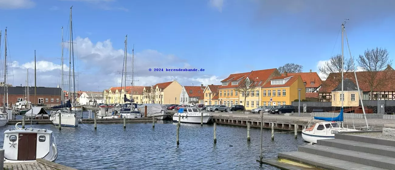 Am nächsten Morgen geht es weiter. Wir sperren die Autobahnen im Navi und fahren auf die Insel Fünen. Wir bleiben an der Südküste und schauen uns das Städtchen Faaborg an. Die Innenstadt gefällt uns gut. In einer Fischräucherei am Fährhafen kaufen wir Räucherlachs - sehr lecker. Dann suchen wir uns einen Stellplatz und finden einen Platz direkt am Meer in der Marina von Fjellebroen. Es gibt Platz für 6 Mobile, ein Platz ist belegt, also fast die freie Auswahl. Das Sanitär ist im Clubhaus des Jachtclub, zwar alt, aber sauber. Für die Nacht werden 20 € fällig, die man in einem Briefumschlag in den dafür vorgesehenen Briefkasten versenkt. An der Marina führt ein Küstenwanderweg vorbei, so dass es kein Problem ist, die Hunde auszuführen. Die Elektrik ist etwas schwachbrüstig. Unserer Senseo Kaffeemaschine oder der Föhn auf kleiner Stufe löst die Sicherung aus.