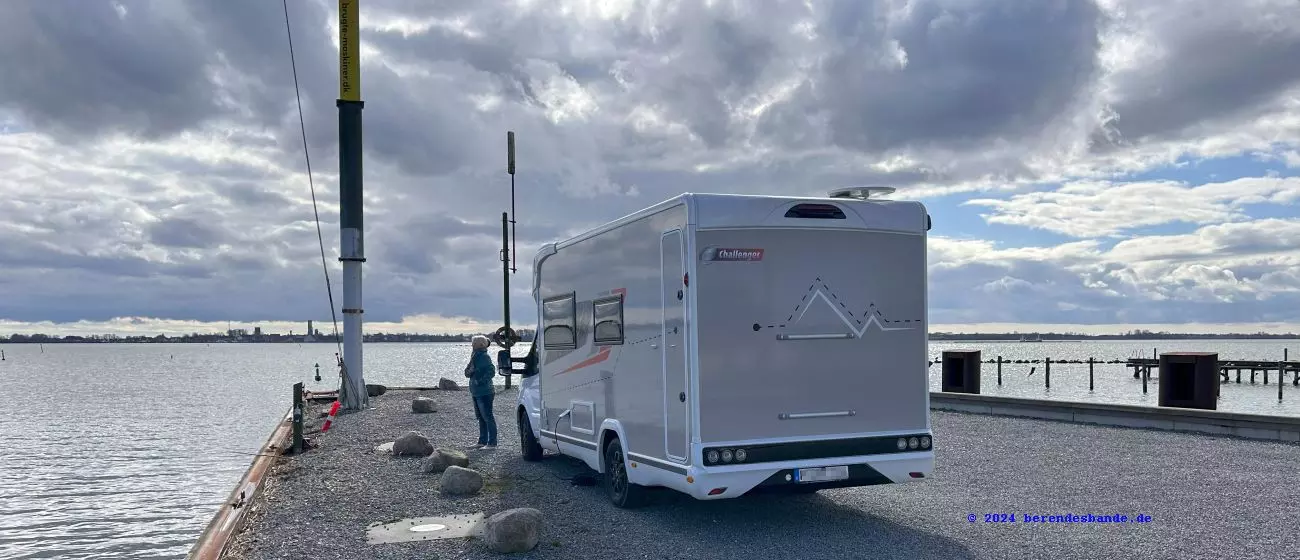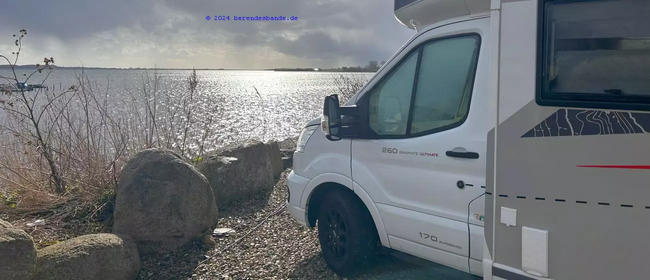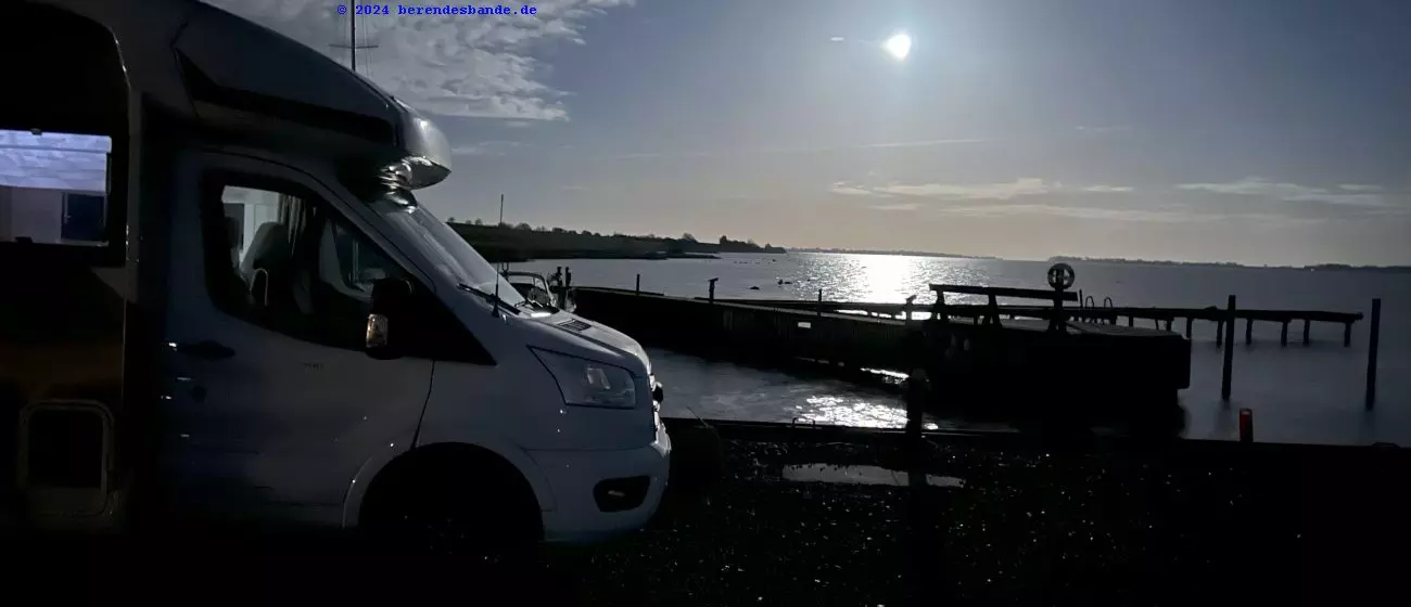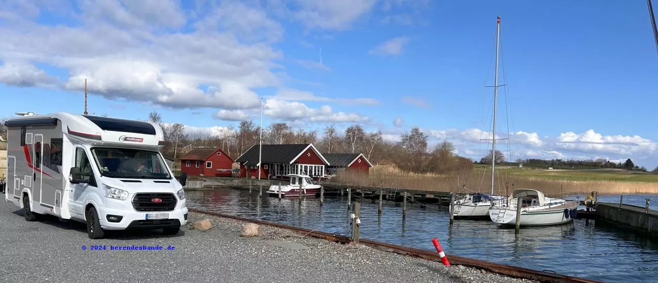 Nach stürmischer, regnerischer Nacht fahren wir weiter auf die Insel Langeland. In Spodsbjerg parken wir am Hafen und machen eine kleine Stadttour. Anschließend nehmen wir die Fähre nach Tars auf der Insel Lolland. Die Fahrt dauert 45 Minuten und kostet 443 DKK, etwa 60 €. Als wir von Bord rollen, regnet es in Strömen. Wir nehmen den direkten Weg nach Maribo und checken bei Maribo Sø¸ Camping ein. Für 285 DKK, etwa 38 €, gibt es auch ein geheiztes, sauberes Waschhaus. Der Platz liegt direkt an einem Naturpark, wo man z.B. Seeadler bewundern kann. Gassirunden sind kein Problem. Im Sommer gibt es hier wohl ein Mückenproblem, bei 8 Grad Außentemperatur ist das für uns kein Thema. Die City ist fußläufig erreichbar.