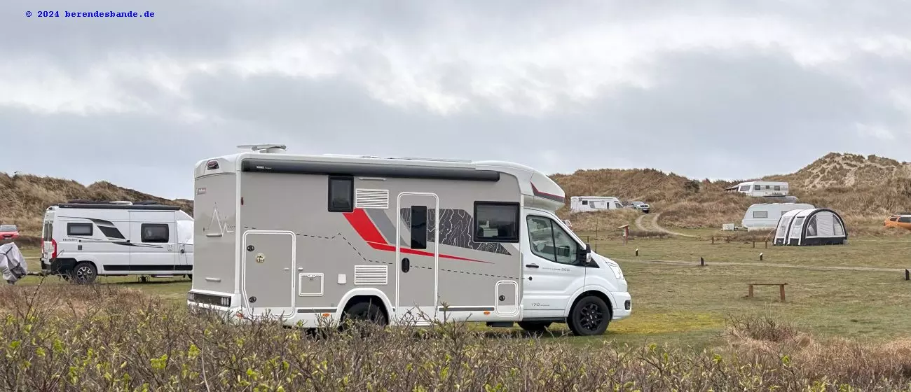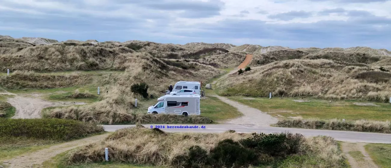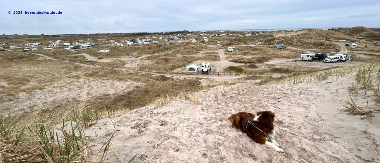 Gesagt - getan, nach der Morgenroutine checken wir aus, drehen noch eine Hunderunde am Strand und fahren dann etwa 30 km nach Ydery Lyng. Dort nehmen wir die Fähre nach Aarhus. Wir rollen pünktlich von Bord und weil das Wetter es gerade nicht so gut mit uns meint, fahren wir die ca. 140 km lange Strecke nach Hvide Sande über die 15. Wir checken bei DCU Lyngvig Camping für zwei Tage ein. Der riesige Platz hat noch jede Menge Plätze frei. Hier, an der Nordseeküste, trifft man auch wieder vermehrt auf deutsche Urlauber. Den Platz kennen wir schon, wir waren 2018 schon einmal hier. Auf dem riesigen Areal direkt in und hinter den Dünen gibt es etwa 900, großzügige Stellplätze. Die Sanitärhäuser sind modern und sauber. Man hat mittlerweile auch begonnen, die Plätze zu nummerieren, so dass man auch im Voraus einen Platz buchen kann. Das gab es 2018 noch nicht. Auch die Elektroanlage wurde weiter modernisiert. Lange Anschlusskabel sind hier jedoch nach wie vor ratsam.