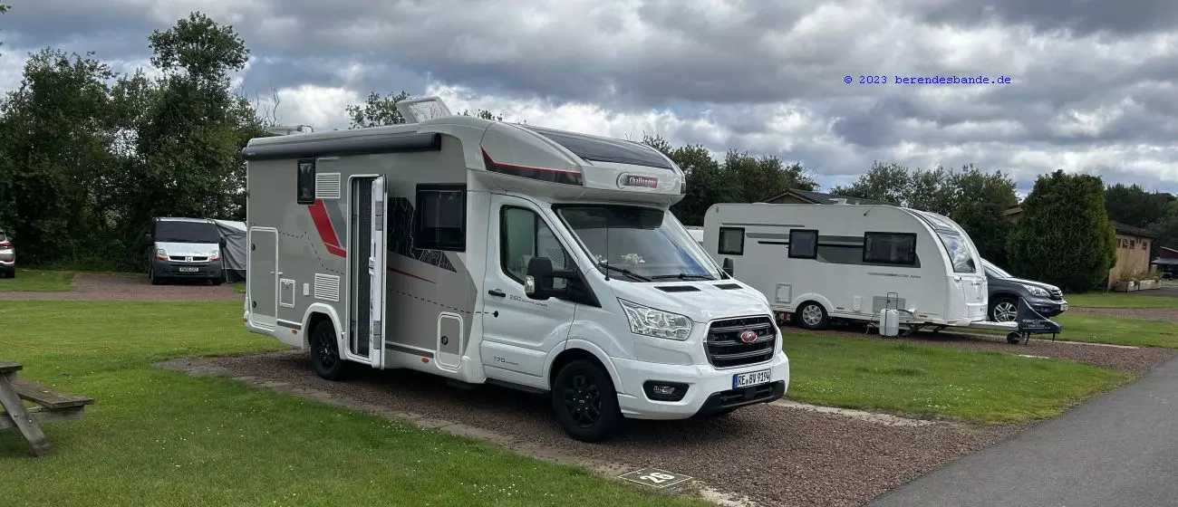 Eines vorab, wir waren wieder einmal in den Sommerferien unterwegs, also in der Reise-Hochsaison. Es war ein toller Urlaub, sieht man von dem Schaden an Emma und Snickers Verletzung ab. Wir hatten mit etwas mehr Wärme und etwas weniger Regen gerechnet. Aber gut, das Wetter in Deutschland war auch furchtbar. Wir waren über 4000 km unterwegs, das ist schon eine Hausnummer. Die Anreise über Calais - Dover bis nach Edinburgh zieht sich wie Kaugummi. Die Straßen in Schottland sind zum Teil sehr schmal und in sehr schlechtem Zustand. Wir haben viel zu sehen bekommen. Das landschaftlich schönste Stück war die Tour an der Westküste über die NC500. Der geilste Stellplatz war Windhaven Site in Bourgh, direkt an den Klippen. Plätze des Caravan and Motorhome Club haben uns stets gefallen. Dort gab es immer noch einen Stellplatz, wenn wir an anderer Stelle leer ausgegangen sind. Die App Park4Night funktioniert in UK sehr gut. Unsere bisherigen Favoriten von Promobil und die skandinavische "Stelplats" App, funktionierten nicht wirklich. Der Linksverkehr war kein Problem. Nach kurzer Zeit guckt man automatisch immer zuerst nach rechts, statt nach links.