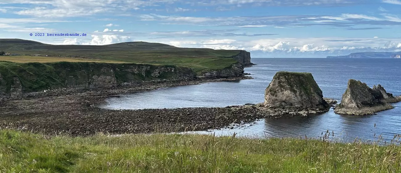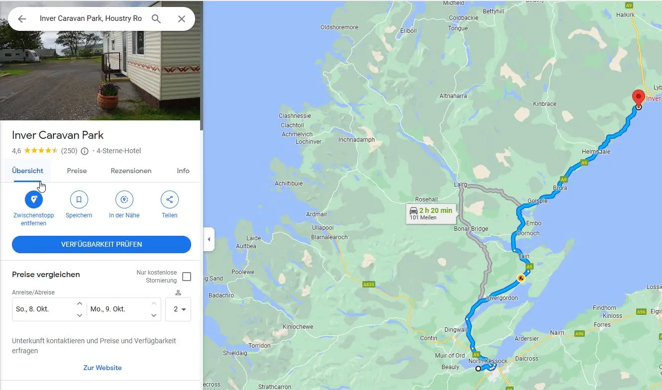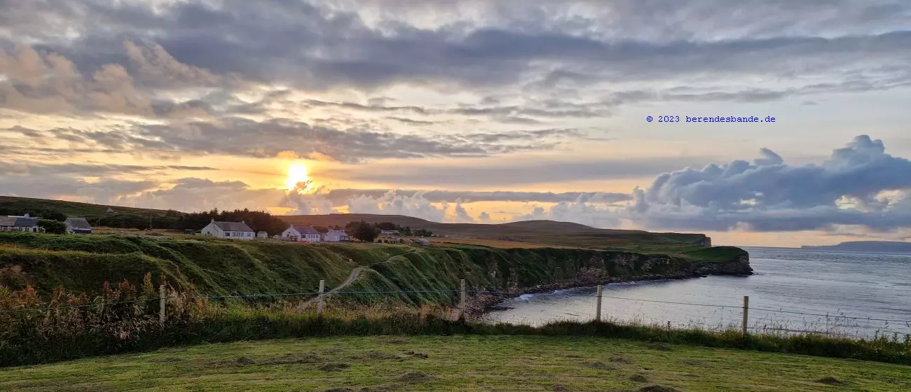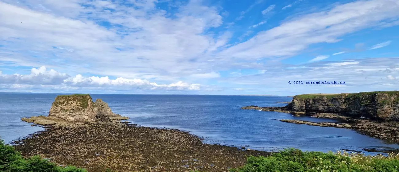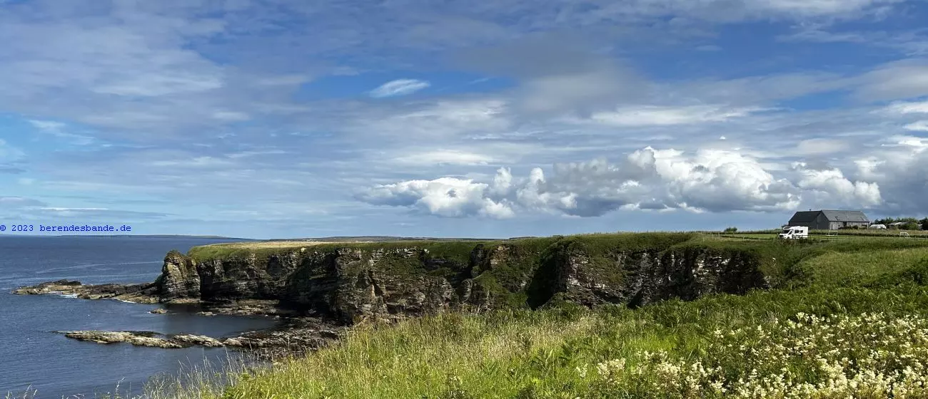 Nach regenreicher Nacht geht es weiter auf dem Weg nach Norden. Die A9 verläuft entlang der Nordseeküste und es gibt wirklich tolle Ausblicke. Wir haben versucht, einige dieser Ansichten in Fotos abzulichten. Die Realität ist 100 Mal schöner. Das Wetter bleibt wechselhaft mit Schauern, allerdings ist es nur noch 12 bis 14 Grad warm. Wir stoppen in Dunbeath und checken bei Inver Caravan Park für eine Nacht ein. Es ist ein kleiner Campingplatz mit 19 Stellplätzen, einem liebevoll hergerichteten Sanitär. Alles in die Jahre gekommen, aber nett und sauber. Wir zahlen 31 Pfund. Der Regen macht nun etwas größere Pausen, so dass wir eine schöne Gassirunde drehen können. Auf dem Rückweg müssen wir etwa 300 m entlang der A9 laufen. Es ist gruselig, wenn Autos und LKW mit 90 km/h an uns auf einem 1 m breiten Gehweg entlang brettern. So sind wir um ein Abenteuer reicher und freuen uns auf eine heiße Tasse Kakao zum Aufwärmen. Morgen werden wir wohl den äußersten Nordwesten in John O' Groats erreichen. Ob wir noch weiter auf die Orkney Inseln weiterreisen, haben wir noch nicht entschieden. Der grobe Plan ist, an der Westküste zurück nach Glasgow zu fahren. Ob wir zwischendurch auf die Inseln abbiegen - schauen wir mal...