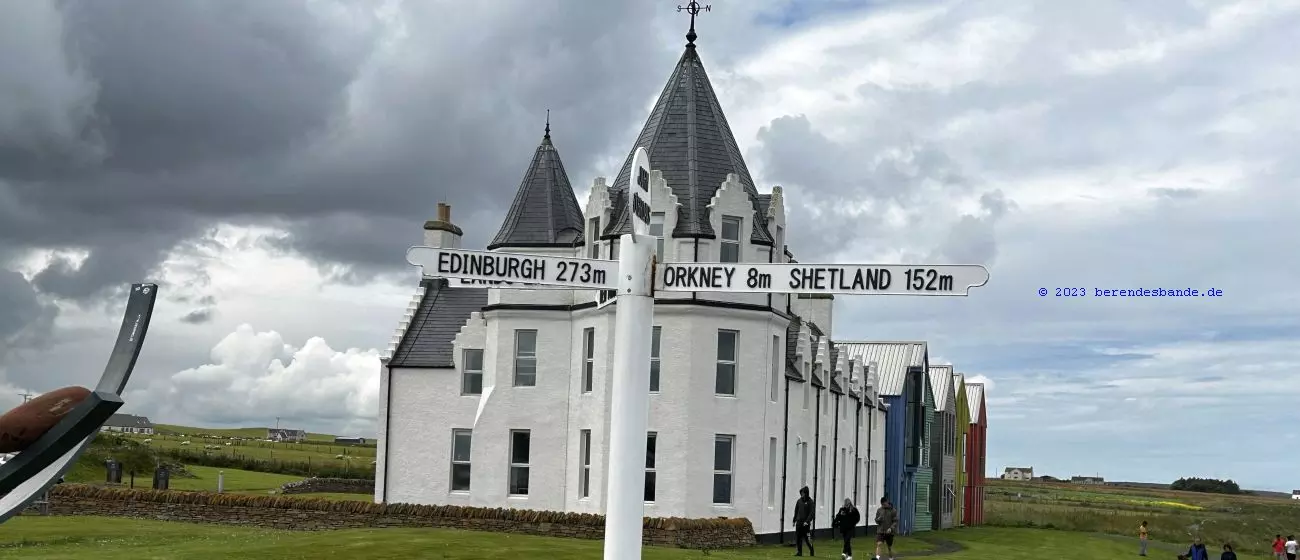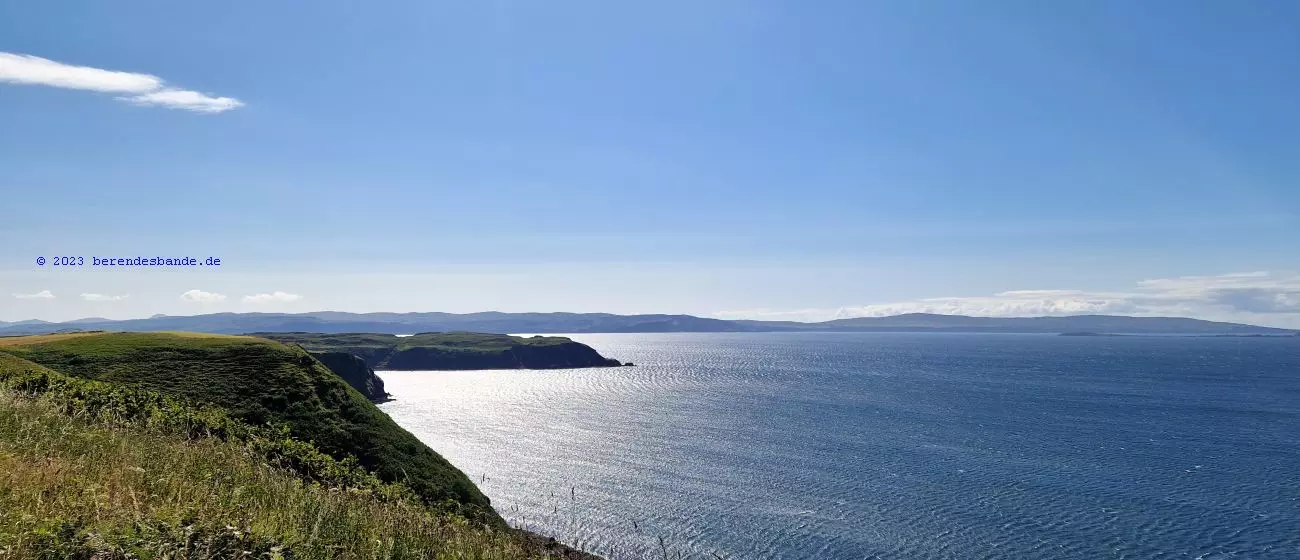 Am nächsten Morgen scheint tatsächlich die Sonne. Wie geplant fahren wir nach John O' Groats. Es ist eine Touristenattraktion mit allem was dazu gehört, viele Menschen, Andenkenläden, Pommesbuden. Und trotzdem steigen wir aus und machen die obligatorischen Fotos. Dann fahren wir nach Westen, weiter entlang der NC500. Wir stoppen Brough und checken bei Windhaven Site für eine Nacht ein. Der Platz hat 20 Stellplätze, davon 6 mit Strom. Wir bekommen einen ohne Strom für 24 Pfund, allerdings den, mit der spektakulärsten Aussicht. Wir stehen am Cliff mit Blick auf die Insel Hoy. Der Besitzer kümmert sich übrigens um gestrandete Seehunde. Vier von ihnen hat er in seiner Garage. Beim Gassigang zum Strand sehen wir Seehunde in der Bucht. Dazu lacht die Sonne. Es tut richtig gut. Der Platz hat ein rustikales Sanitär, was aber super sauber ist. Es gibt auch ein Cafe und einen Auslaufplatz für Hunde.