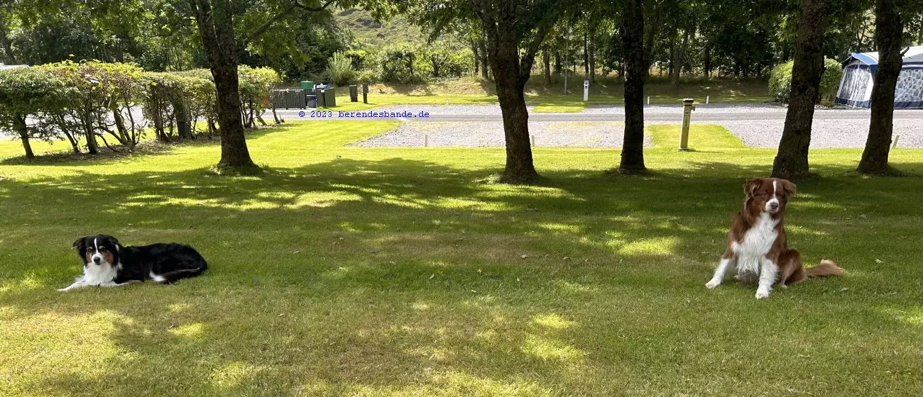 Den Samstag genießen wir und faulenzen in der Sonne. Den Fellnasen gönnen wir ein Bad im Fluss. Anschließend sind Hund und Mensch nass. Für den Sonntag planen wir einen Besuch auf der Isle of Skye.