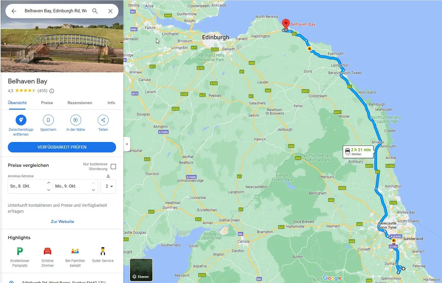 Es gibt einen groben Plan, aber wenig Detailplanung. Wir haben die Fähre von Calais nach Dover gebucht, für die Hin- und Rückreise. Diese war etwas günstiger, als die Fahrt durch den Eurotunnel. Wir haben uns auch andere Fährverbindungen angesehen, diese jedoch, wegen der 16-stündigen Dauer als unzumutbar für die Fellnasen oder wegen unseres unklaren Starttermins, als unbezahlbar verworfen. Unsere Schottlandtour soll in Edinburgh starten, aber bis dahin sind es etwa 1000 km zu fahren.