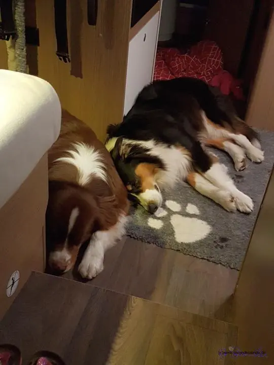 Es gibt zwar insgesamt 5 Betten in unserem Bommel, aber eigentlich ist der Carado T348 ein Fahrzeug für zwei Personen. Auch die beiden Aussies müssen ja noch ein Plätzchen finden. Aber der Reihe nach….